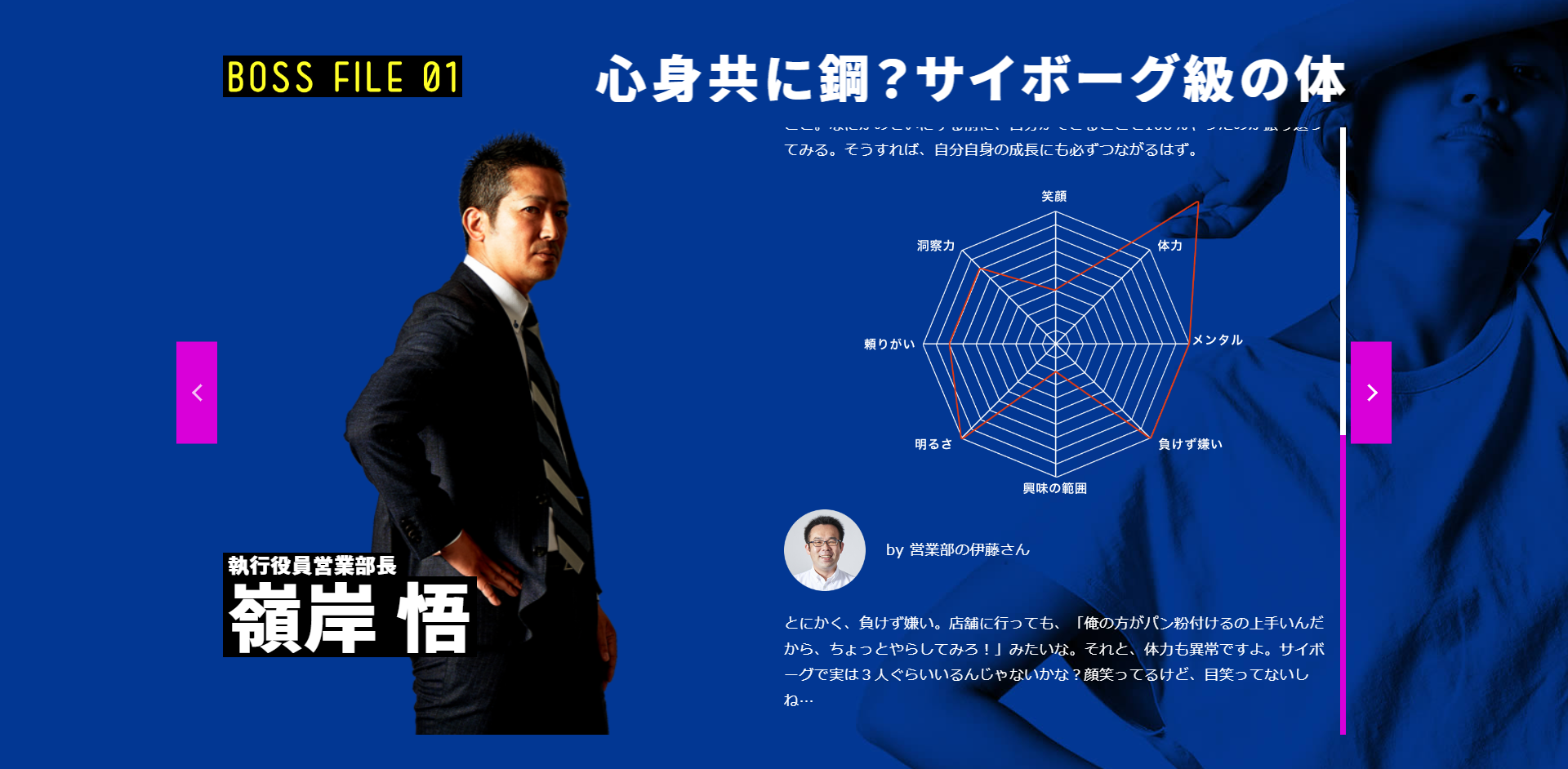 身近な社員からのタレコミを添えて、各BOSSをレーダーチャートと共に解説します。