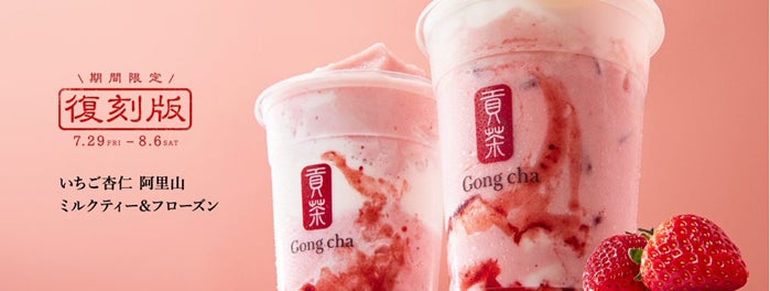 「いちご杏仁 阿里山 ミルクティー&フローズン」は、本年3月17日(木)の発売から42日間で約41万杯、1日あたり約1万杯をご購入いただいた、国内Gong chaの期間限定商品史上最大のヒットメニューです。終売後なお、多くのお客さまから復活を望むお声が寄せられておりました。もう一度飲みたい、今度こそ飲みたい、とお考えの方をはじめ、この限定復活の機会に多くのお客さまにお楽しみいただければ幸いです。