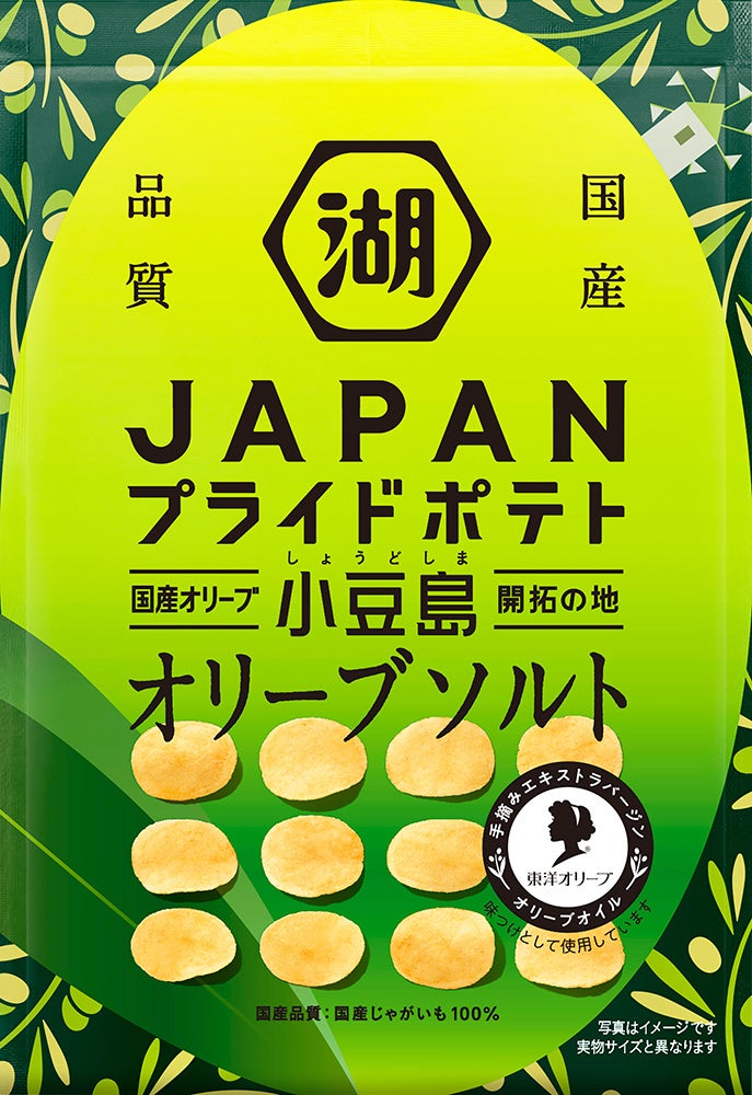 小豆島に育まれた素材を活かした地域活性化に取り組む小豆島町と、日本の誇りである風土・文化に育まれた素材を商品に込めて全国に紹介していきたい湖池屋との想いが重なり、2019年に「JAPAN PRIDE POTATO オリーブソルト」を発売しました。