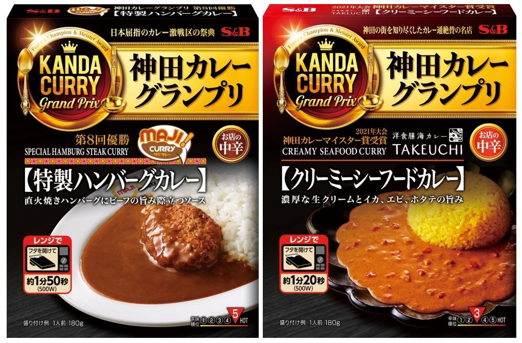 エスビー食品株式会社は、東京・神田で開催されるカレーの祭典「神田カレーグランプリ」のレトルトシリーズより、「MAJIカレー 特製ハンバーグカレー」「洋食膳 海カレー TAKEUCHI クリーミーシーフードカレー」を新発売し、既存 7 品を電子レンジ加熱対応が可能な仕様へとリフレッシュします。