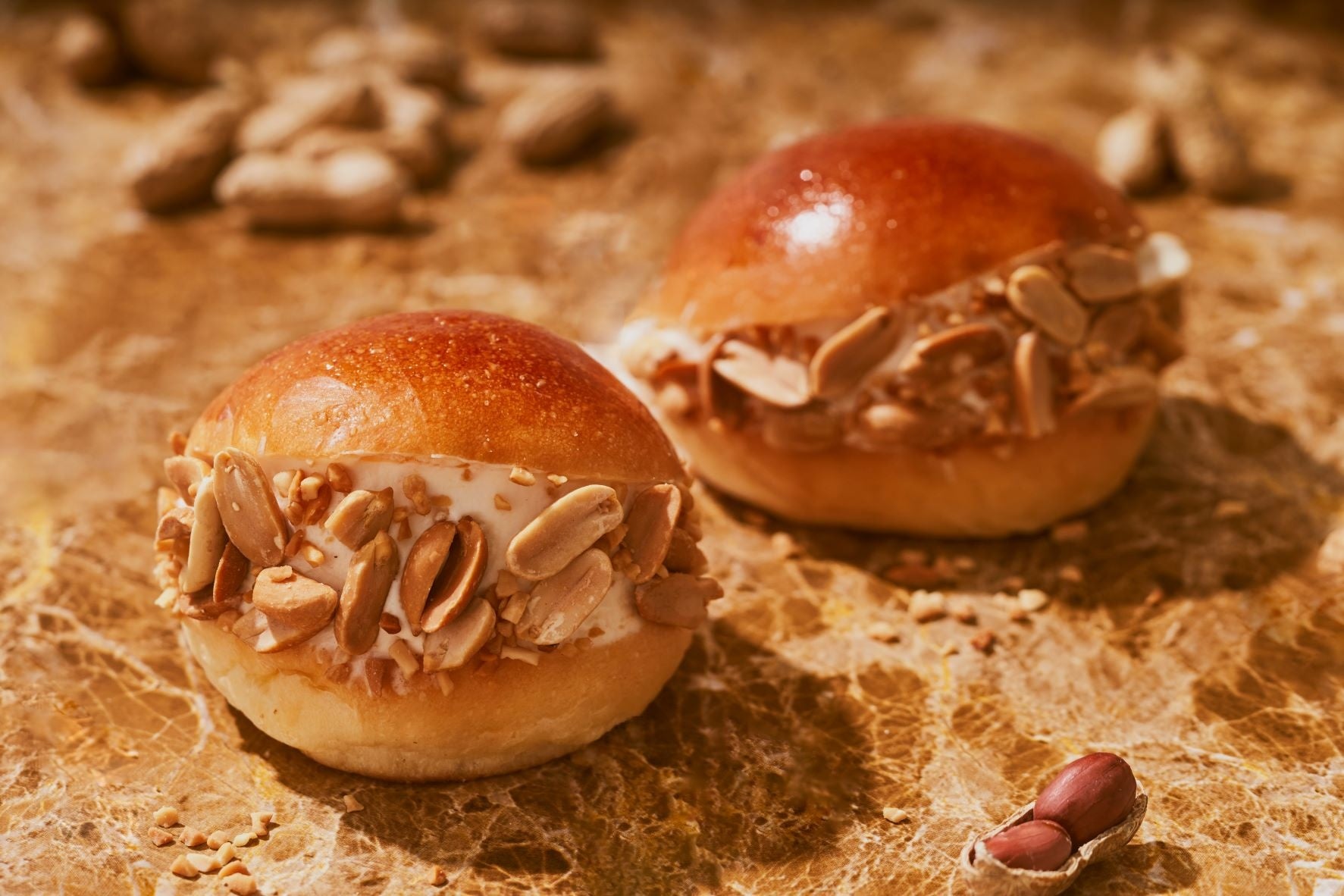 全国1位の生産量を誇る千葉県八街産のピーナッツペーストとパウダーに、なめらかで軽いホイップクリームとカスタードクリームを混ぜ合わせ、ふんわりとしたバターロールにサンドしました。