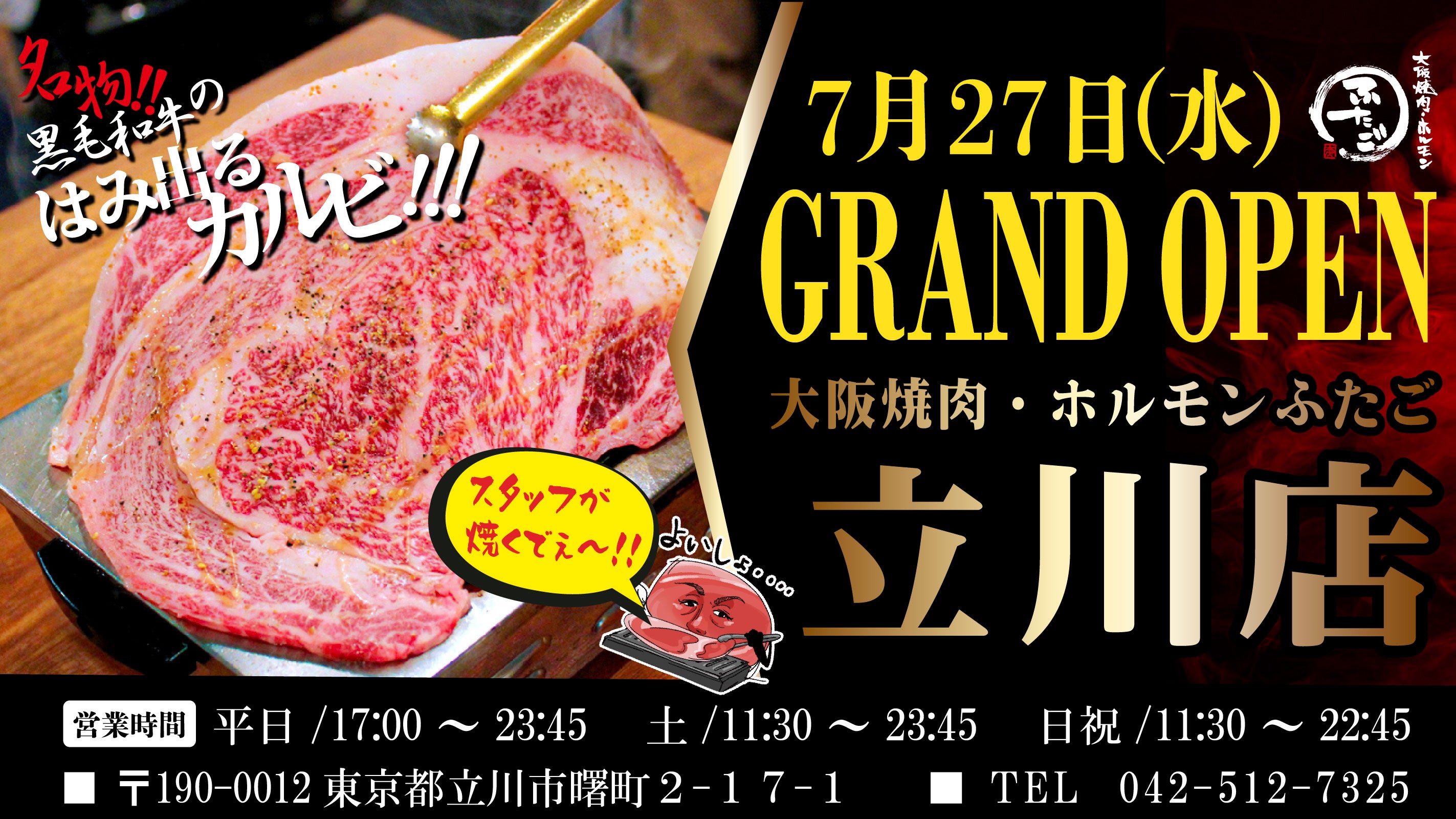 「大阪焼肉・ホルモン ふたご」を世界展開する株式会社FTG Company(本社:東京都目黒区、代表取締役社長:李 純哲)は、ダイニングテーブル合同会社(本社:東京都立川市)とフランチャイズ加盟店契約を締結し、「大阪焼肉・ホルモン ふたご 立川店」を2022年7月27日(水)グランドオープンします。