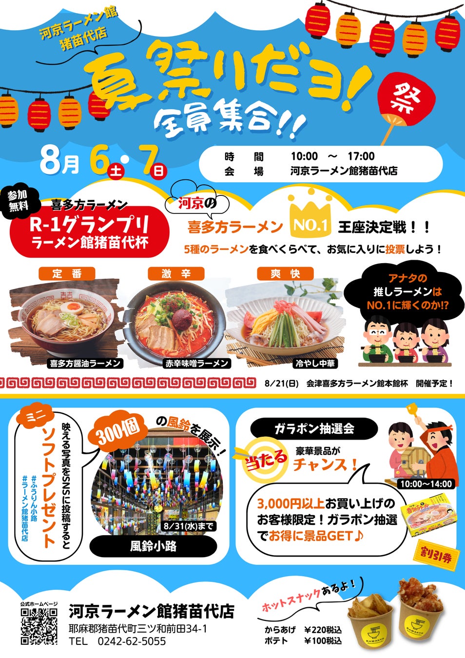 この夏、河京ラーメン館猪苗代店で“夏祭り”開催します!
