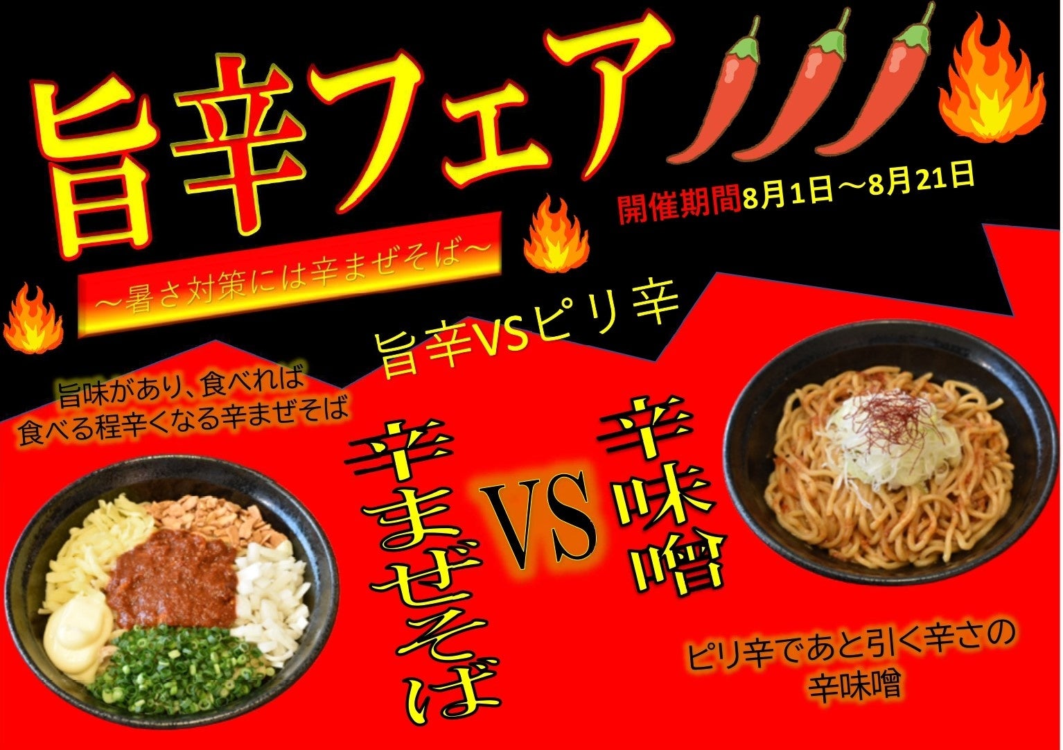 この暑い夏を乗り切る為に、旨辛フェアの開催を決定しました。良い汗かいて夏を乗り切ろう。