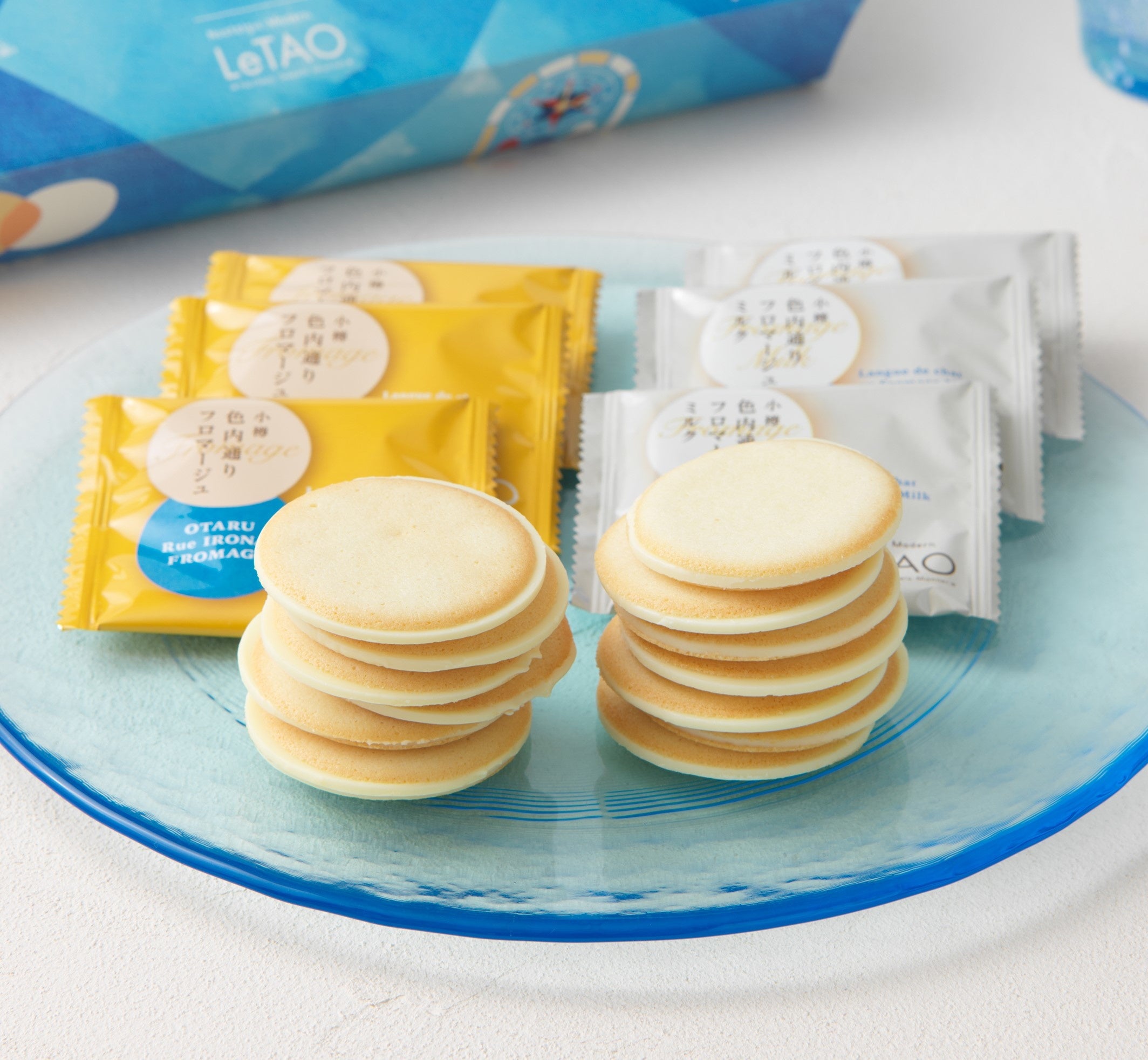 ルタオならではのチーズラングドシャ「小樽色内通りフロマージュ」。フロマージュとミルクの2種類のフレーバーを、夏限定ギフトパッケージに詰め合わせました。