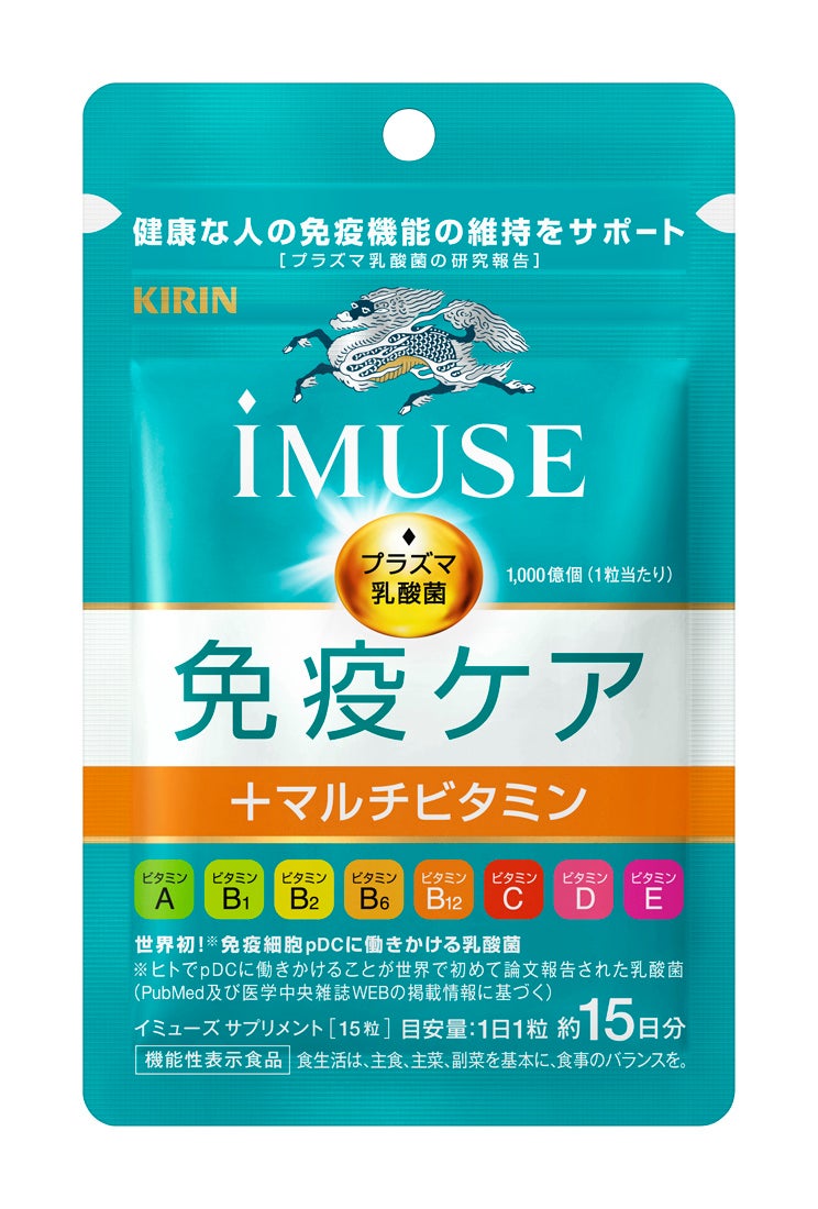 ・今年8月には、「プラズマ乳酸菌」の働きで健康な人の免疫機能の維持に役立ち、不足しがちなビタミン8種を配合した「キリン iMUSE(イミューズ) 免疫ケア+マルチビタミン8種」を新発売。