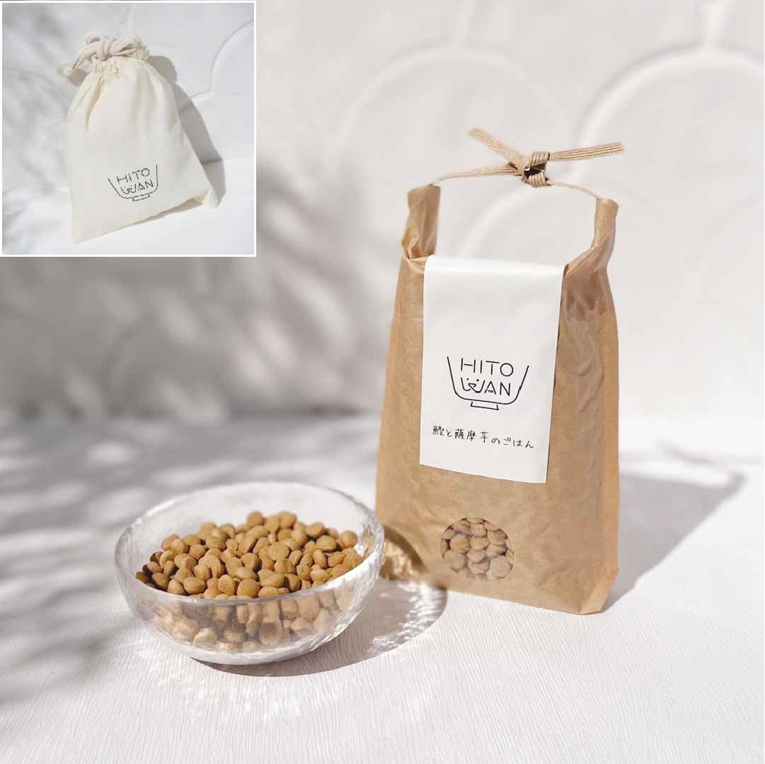 香り高いお出汁の香りが人気のドライフード250g1つと、オリジナル巾着袋1つが入っているプチギフト。