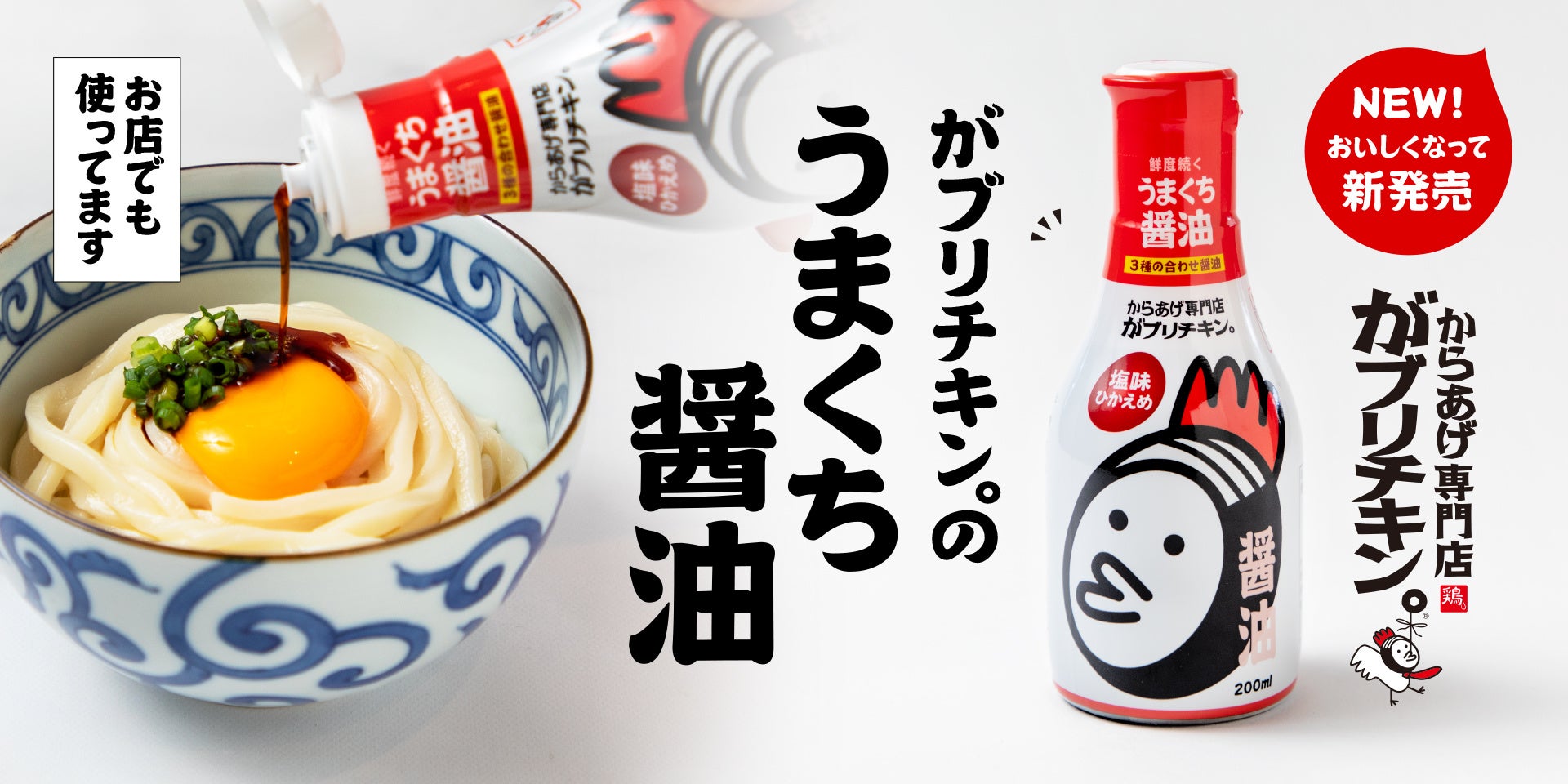 株式会社ブルームダイニングサービス(所在地:名古屋市中村区、代表取締役:杉村 明紀)が運営する飲食ブランド「がブリチキン。」は、創業130余年の老舗醤油ブランド「ヤマモリ株式会社」(所在地:三重県桑名市、代表取締役社長執行役員:三林 圭介)とコラボし、「がブリチキン。うまくち醬油」を8月初旬より新発売します。今回、「がブリチキン。の醤油をお家でも使いたい」というニーズにお応えして、お店の卓上に設置している醤油をご家庭でも楽しんでいただきたいと、東海エリアの量販店より順次、全国にて販売が決定いたしました。