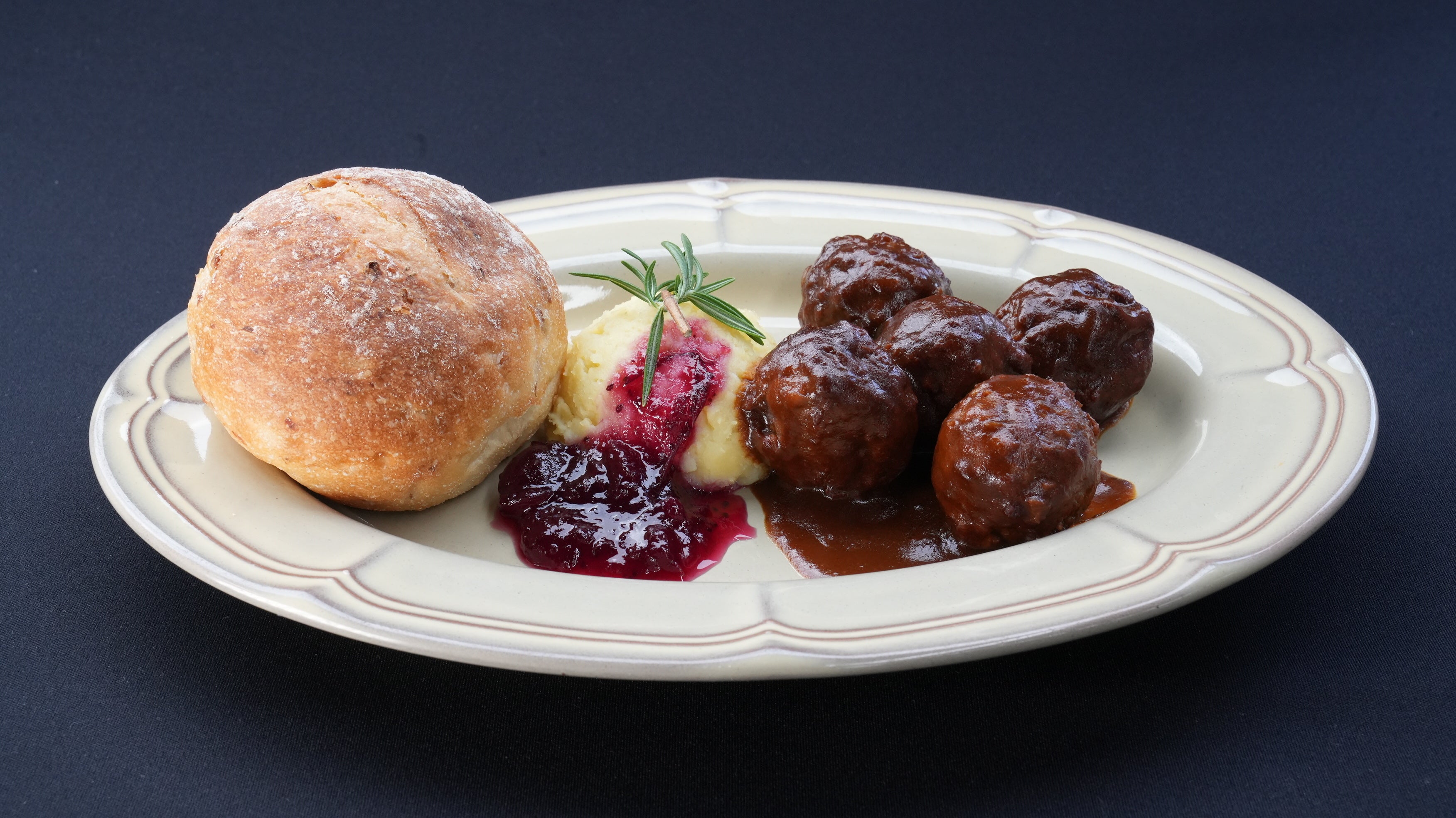 ミートボールのしょっぱさと、リンゴンベリーの甘酸っぱさのハーモニーをお楽しみください。