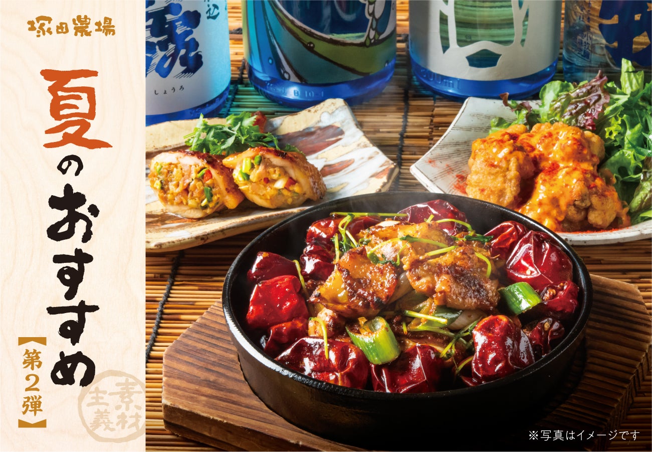 株式会社エー・ピーホールディングス(本社:東京都豊島区、代表取締役 社長執行役員CEO:米山久)が運営する塚田農場(ここでは「宮崎県日南市 塚田農場」、「宮崎県日向市 塚田農場」、「鹿児島県霧島市 塚田農場」を指す)は、2022年7月28日(木)~9月7日(水)の期間中、“夏のおすすめ”メニュー第2弾を提供いたします。