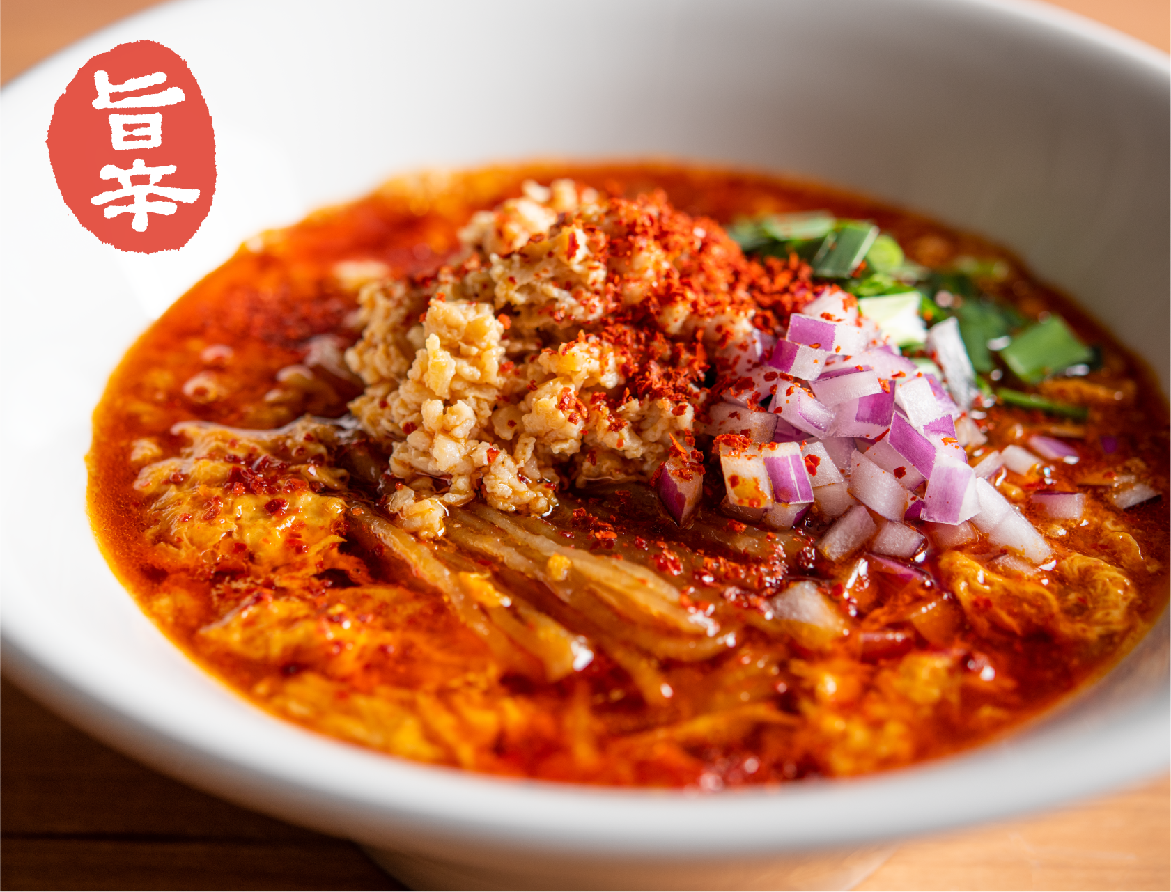 出汁感と旨味が深い濃厚な鶏白湯スープにしっかりとした辛みとニンニクがパンチを効かせ、ふわふわのかき玉が優しく全体をまとめる…宮崎のあの魅惑の麺料理「辛麵」を、塚田農場で味わえます!