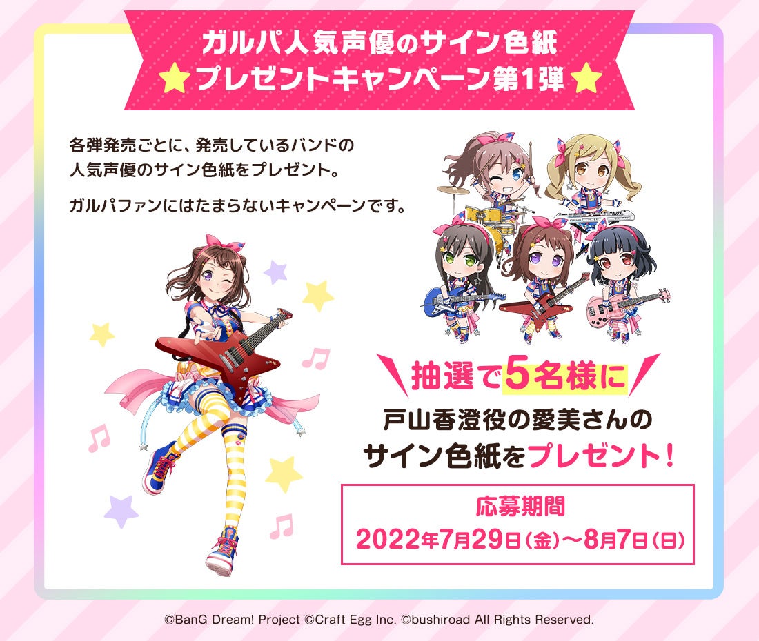 ガルパ人気声優のサイン色紙プレゼントキャンペーン第一弾