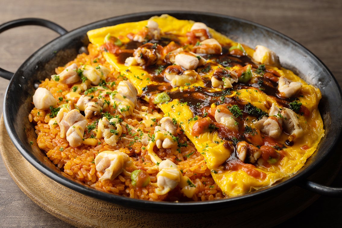 リゾット風のケチャップライスに、ふわふわのオムレツが絡んでまろやかな味わいが食欲をそそる逸品に仕上げました。