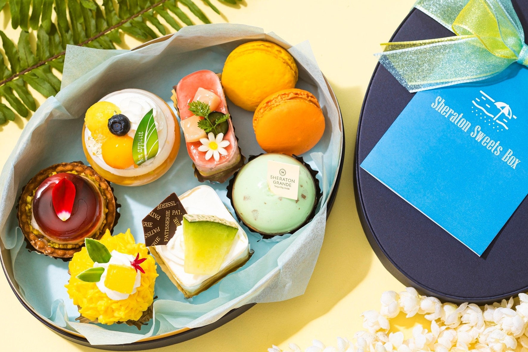 毎月好評の8種類のミニスイーツを宝石箱のように閉じ込めた「#シェラトンスイーツボックス」。8月は、海外リゾート気分を満喫できるエキゾチックなボックスに仕上げています。シェフ選りすぐりのミニスイーツの数々をぜひお楽しみください。