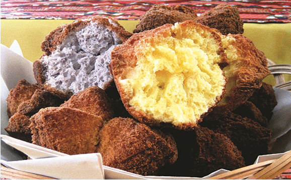 サクッともっちりの絶妙な食感がたまらない。沖縄のソウルフードとも呼べるスイーツです!紅芋のサーターアンダギーもご用意しました!(税込180円)