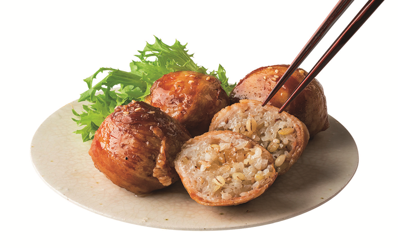 沖縄のブランド豚「あぐー豚」を使用した贅沢な肉巻きおにぎり!自家製の甘辛いタレを絡めており、肉と米の美味しさがさらに引き立つ一品です。