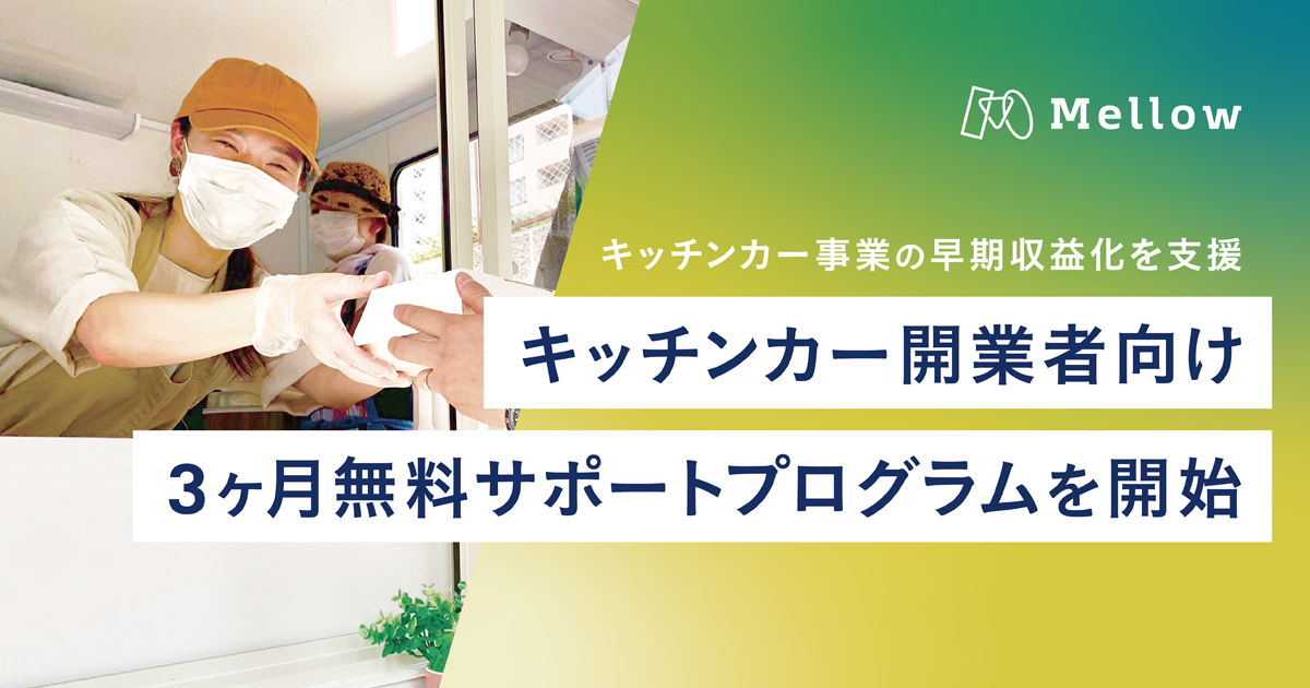 日本最大級のモビリティビジネス・プラットフォーム「SHOP STOP」を展開する株式会社Mellow (本社:東京都千代田区 代表:石澤 正芳、森口 拓也、以下「メロウ」)は、SHOP STOPに新規登録したキッチンカー開業者へ、3ヶ月間無料サポートプログラムを開始します。また、一定基準を満たした卒業認定者には、早期収益化を実現するための追加プログラムとして、累計1,000万食以上の出店実績データを元にした運営ノウハウ提供を実施。開業初期のサポート体制を拡充してまいります。