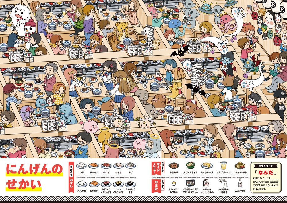 本書では、実際のくら寿司の店内の様子を再現したイラストはもちろん、「もしも、くら寿司が宇宙にあったら?」「もしも、くら寿司がおばけの世界にあったら?」など、ファンタジーの世界でもくら寿司の回転ずしが楽しめる”さがし絵本”になっています。かわいらしいイラストと様々な難易度のさがし物で、親子やきょうだいみんなで一緒に楽しめる絵本です。くら寿司ならではのさがし物も盛り込んでいるので、実際の店舗に足を運んだ際には、ぜひ見比べてみてください。
