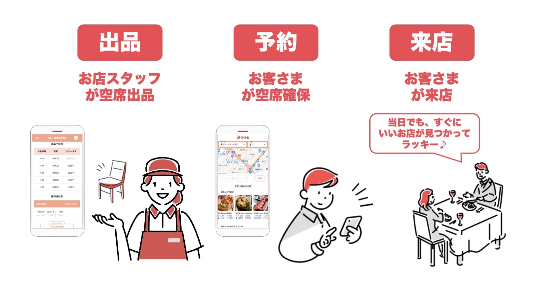 株式会社シートマーケット(本社:埼玉県和光市、代表取締役:鶴田陽平)は、飲食店の当日空席予約サイト「すぐトル」を2022年7月より正式リリースいたしました。当初は銀座・新橋・有楽町エリアに特化し、今すぐ居酒屋やレストランに入りたい生活者と、当日の空席に悩む飲食店をリアルタイムにマッチングし、両者の困り事を解消できるよう努めて参ります。