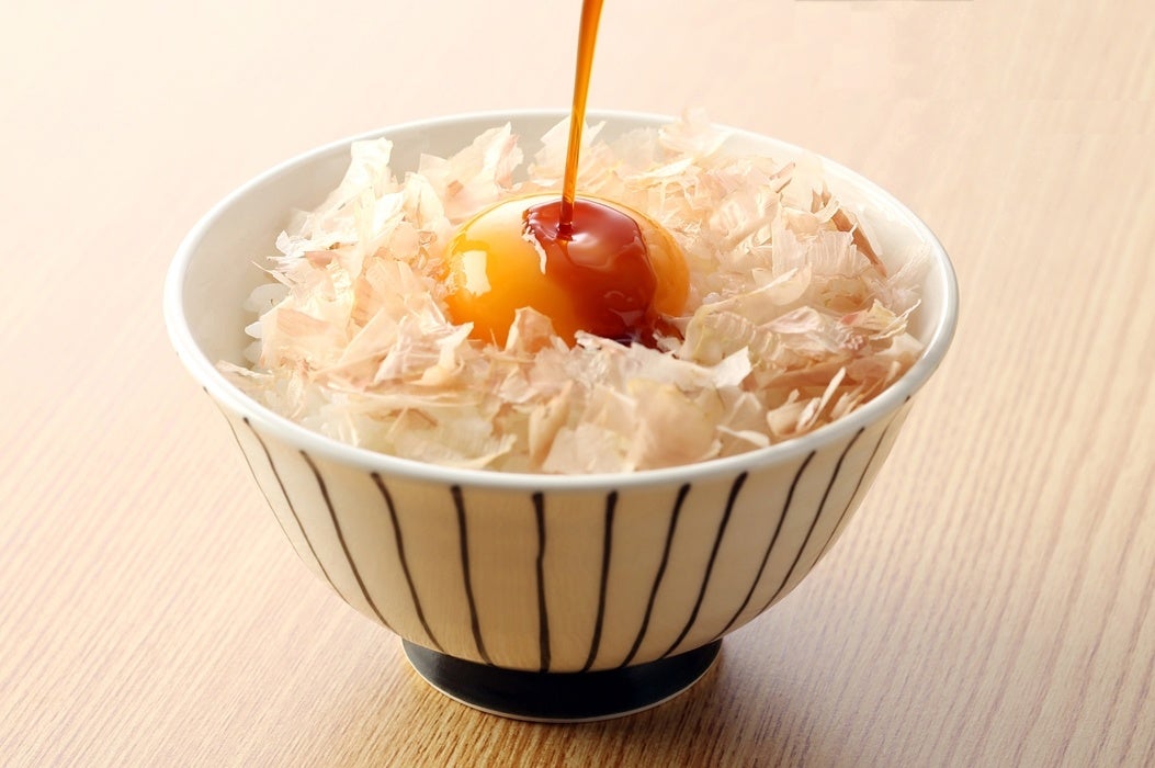 パステルイエローの可愛らしいパッケージに、「たまごめし」をさらに美味しくする、風味豊かな本枯節、甘辛に煮詰めた鰹そぼろ、そしてだしを利かせた専用醤油を詰め合わせました。