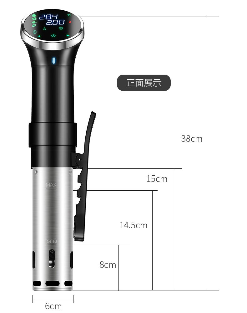 食材の表面から中心まで均一に加熱でき、簡単操作で水温を25℃から95℃までの任意の温度に保つことができるので、もう火加減の心配はありません!