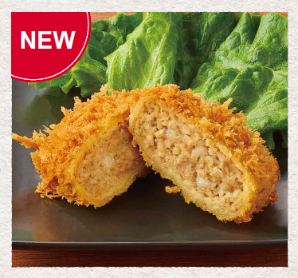 「SaboRED“とろ旨”メンチかつ」は製法にもこだわり、サイズと部位の異なるポークが外具と中具になる二重構造を採用。外具が中具を丁寧に包み込むなど製造工程にも手間をかけることで、一口嚙むと肉汁がジューシーに広がる、“旨みの二重奏”を実現しました。