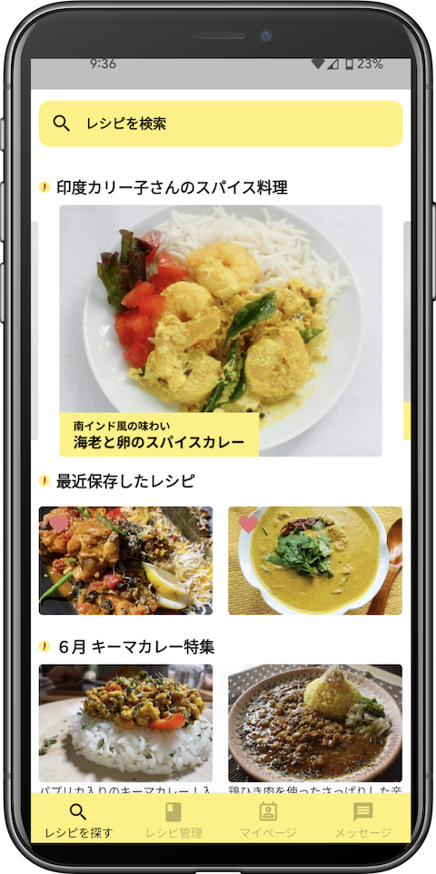 The Curryはカレーを中心とした本格スパイス料理に特化したレシピ検索・共有・管理アプリです。 スパイスをふんだんに使った料理レシピが掲載されており、作ってみたいレシピをお気に入り保存して、おうち時間で香り高いスパイシーなごはんを楽しむことができます。 また、オリジナルレシピを忘れないうちに写真や動画で記録して、自分だけのスパイス料理レシピブックとしてもお使いいただけます。