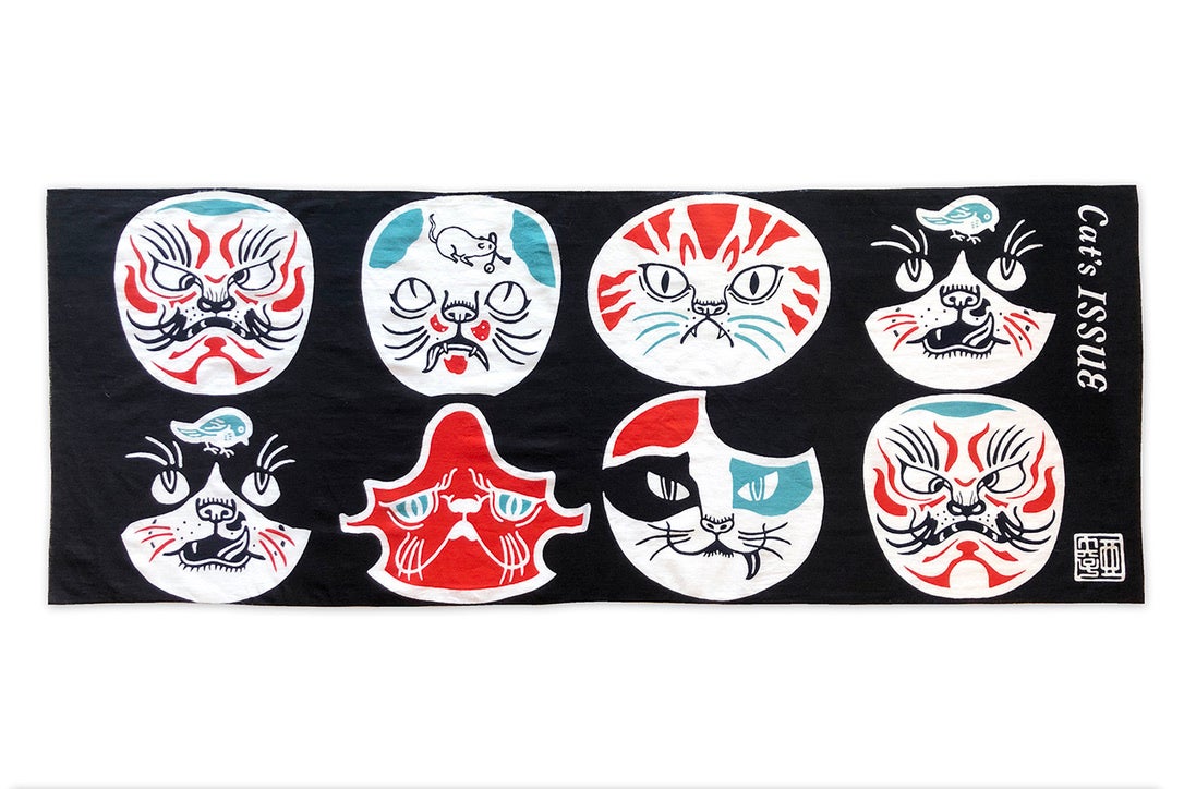 期間中は石黒 亜矢子さん制作のコミカルな猫の掛け軸を展示予定!さらに、以前販売して大人気だった石黒 亜矢子さんコラボの手ぬぐいも販売します。