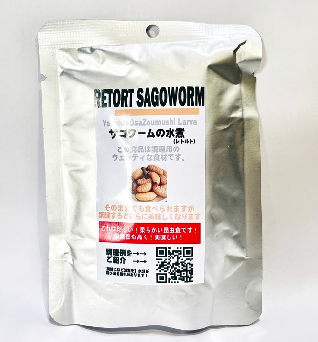 ついに!Wettyな昆虫食が誕生!!!サゴワームを水煮にし、レトルトパウチに仕上げました。