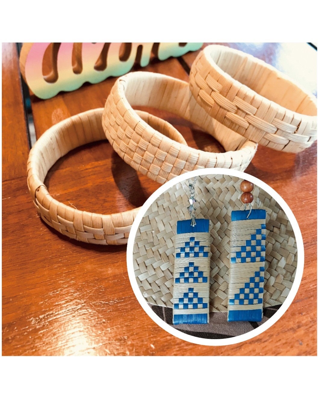 ハワイの伝統工芸「ラウハラ編み」のお話し付き体験クラス。ブレスレットかペンダントを編んでいただきます。10:30~/14:00~/17:00~ (各回最大2時間)●各回定員6名様 参加費:5,500円。※事前予約制