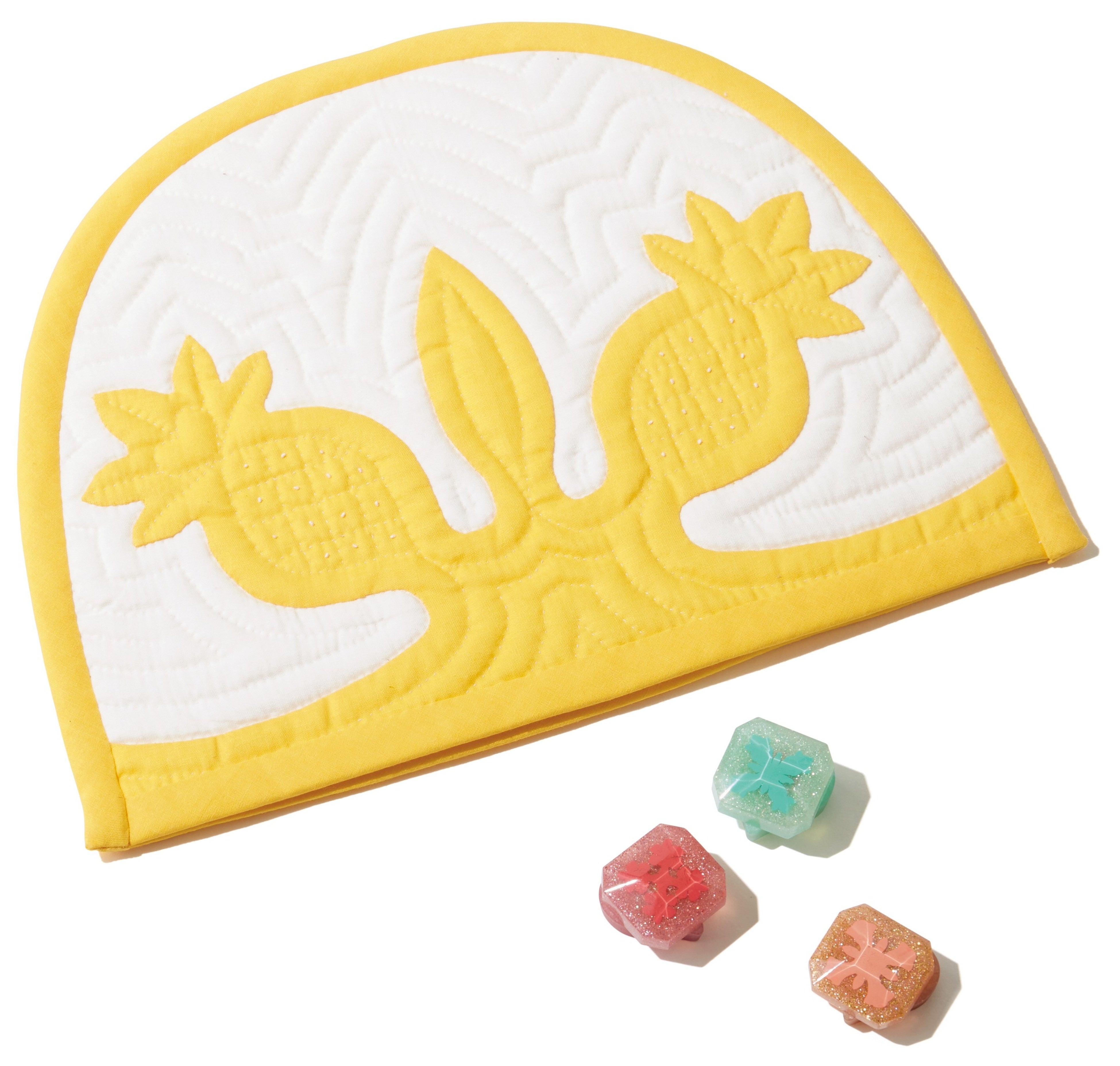 ハワイ在住のキルト作家・アンさんが制作。POPなポットカバー、針を置くマグネットも人気。