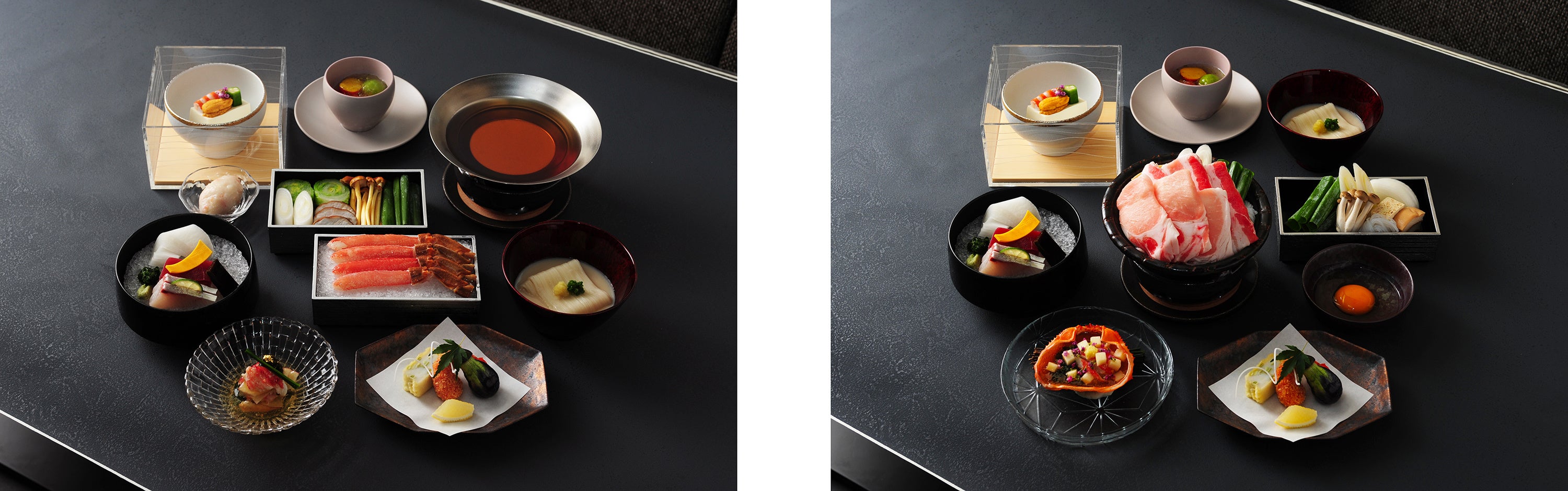 東山 東京駅前店では石垣牛のほか、かに会席や鹿児島黒豚の会席もご用意しております。