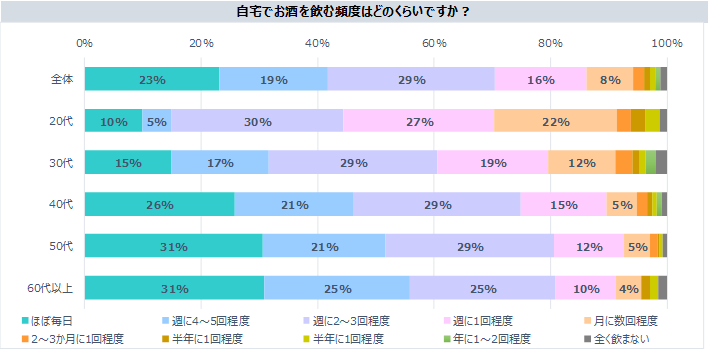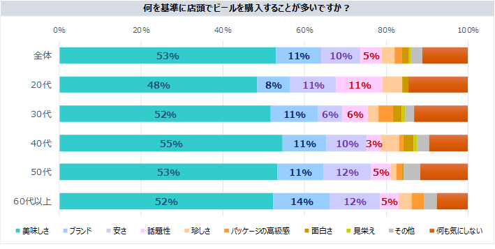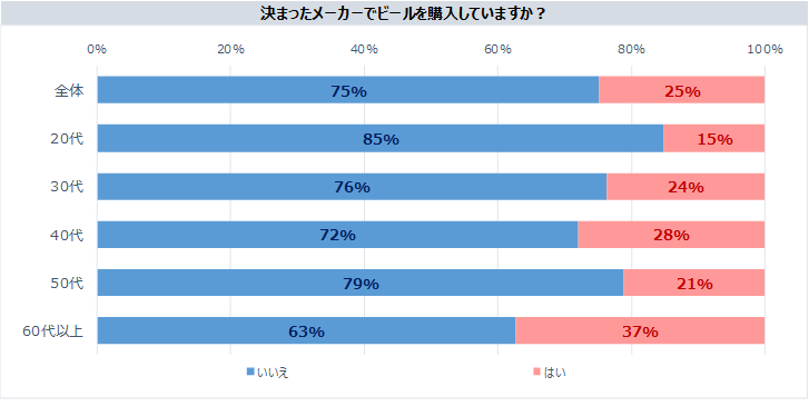本調査ではこれ以外にお酒の購入量やビールから切り替えるお酒など年代別、性別、職業別、既婚・未婚別に集計しています。