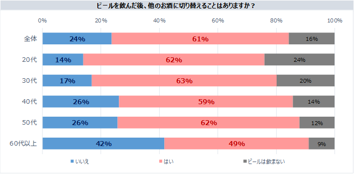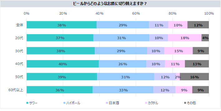 5.ビールから他のお酒に切り替える人は61%でサワーかハイボール。