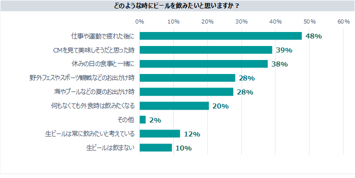 2. ビールを飲みたくなる時は「仕事や運動で疲れた後」