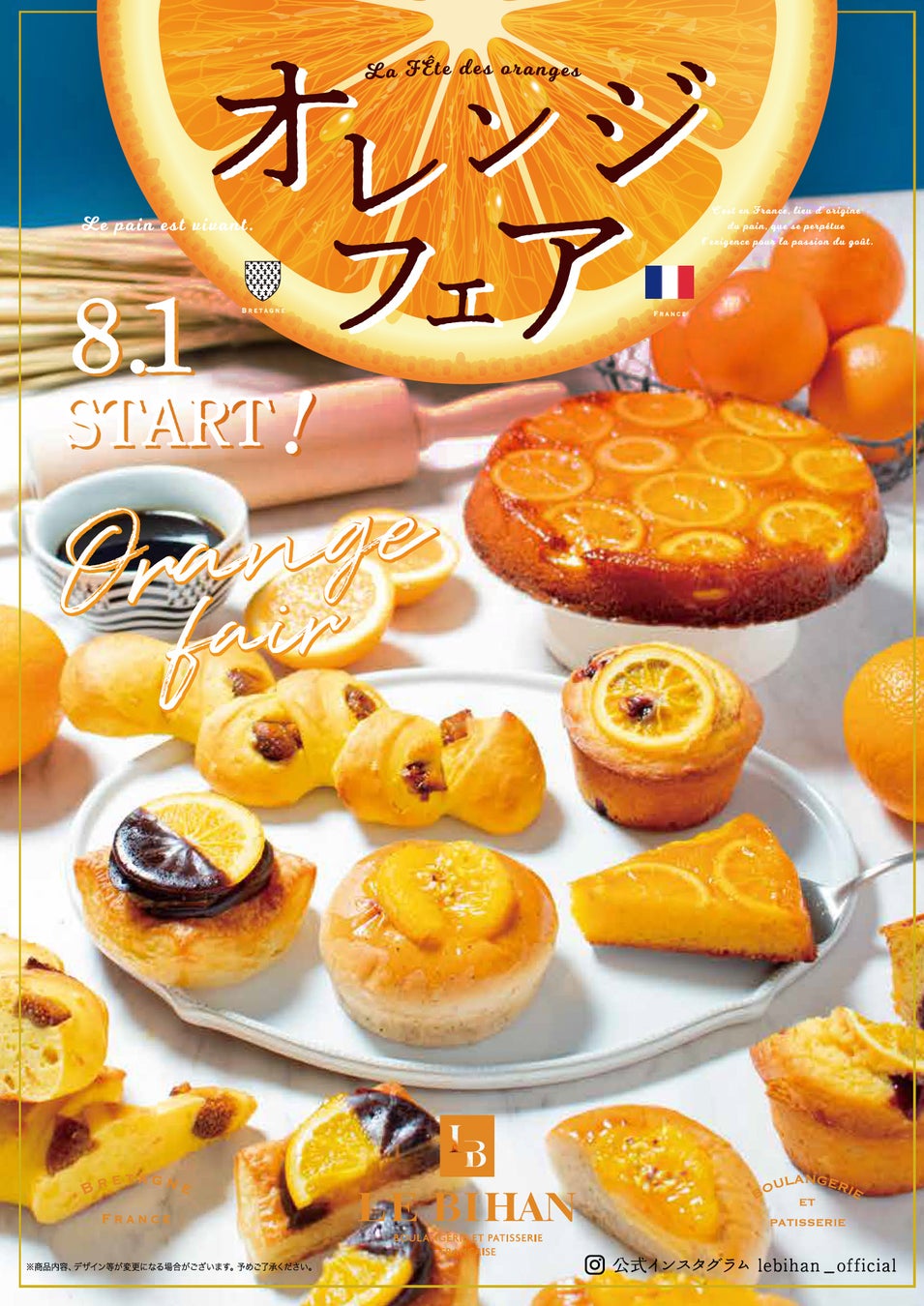 ル ビアンでは、8/1(月)~ 8/31(水)の期間限定で「オレンジフェア」を開催いたします!