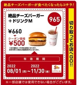 ①「絶品チーズバーガー」+「ドリンクM」