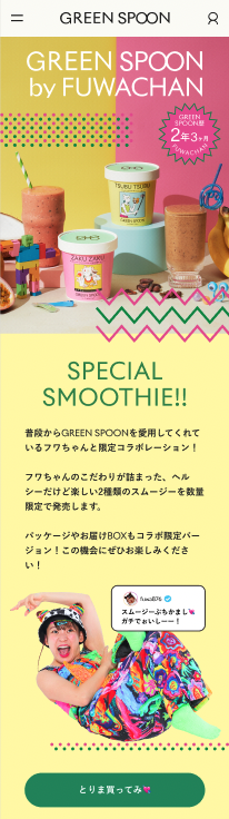 - GREEN SPOON歴2年3ヶ月以上!フワちゃんのこだわりが詰まった限定コラボ