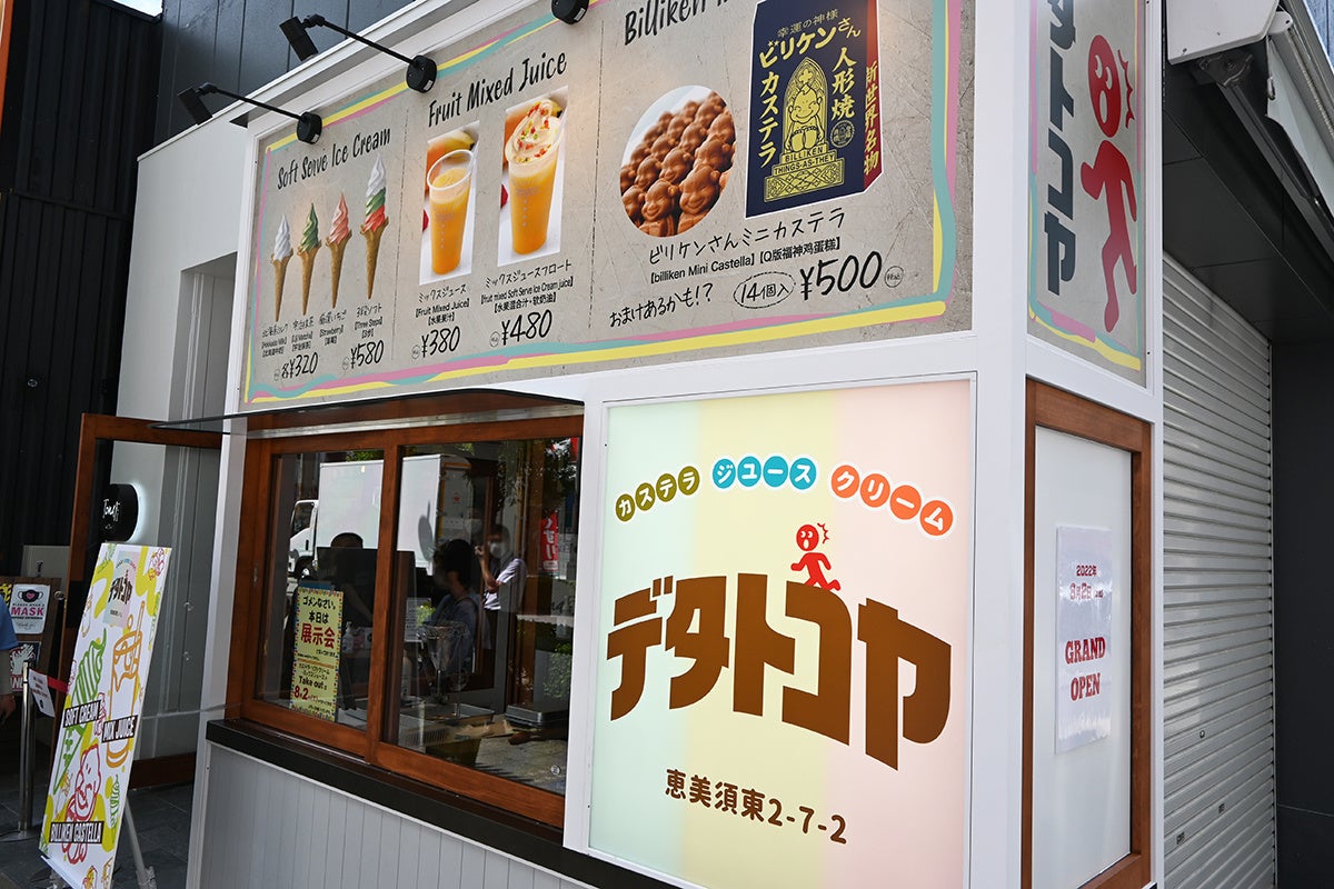 新世界のシンボル通天閣さんのとなりのとなりにある「Cafe TONARI no TONARI」を出たとこにある屋台「デタトコヤ」。大阪名物ビリケン人形焼きカステラとミックスジュースなど、大阪ならではのドリンクやスイーツをお楽しみください。
