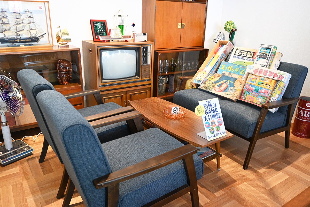 サーフカフェのあるとなりのとなりの街から帰ってきた実家。30年代の昭和ではなく50年代日本がこれからさらに元気になる時代をイメージした、懐かしかわいいレトロポップな空間での店内飲食も可能!フォトスポットとしても写真映え間違いなしです♪(※実家スペースには靴を脱いでお入りください。)今後は実家でのレトロゲーム大会や、YouTube配信などのイベントも開催予定!