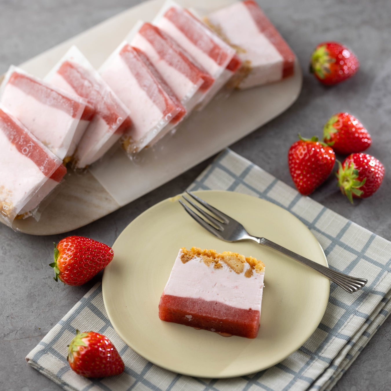 冷凍庫から出してすぐアイスケーキとしても、半解凍状態で甘さと酸味と香りを同時に感じられるころあいでもお楽しみいただけます。トレー入りで冷凍庫で保管しやすい形状です。
