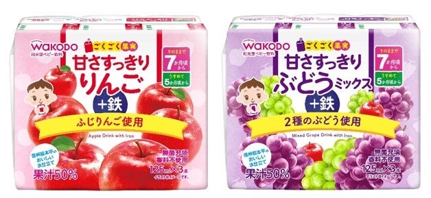 アサヒグループ食品株式会社(本社 東京、社長 川原浩)は、和光堂ブランドのベビー用紙パック果汁飲料『ごくごく果実 甘さすっきりりんご+鉄』『ごくごく果実 甘さすっきりぶどうミックス+鉄』を9月5日から全国で発売します。