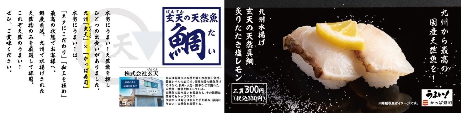 | 〜九州から最高の国産天然魚を!〜 天然魚加工トップクラスの水産加工会社 「玄天」×「かっぱ寿司」第三弾は「天然真鯛」 |
