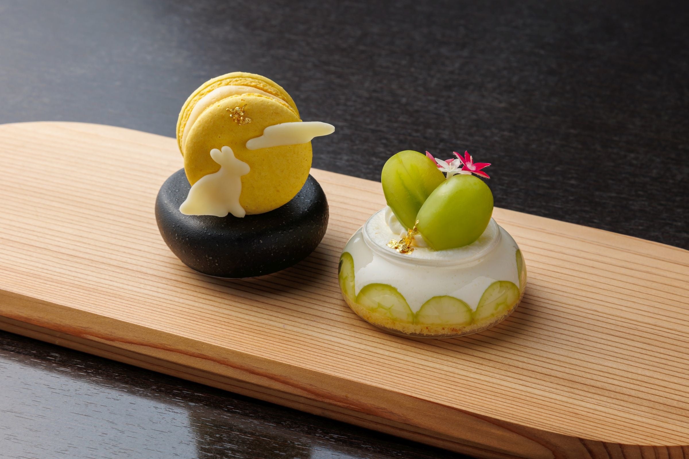 ・洋梨のキャラメリゼを挟んだお月見ウサギ風マカロン