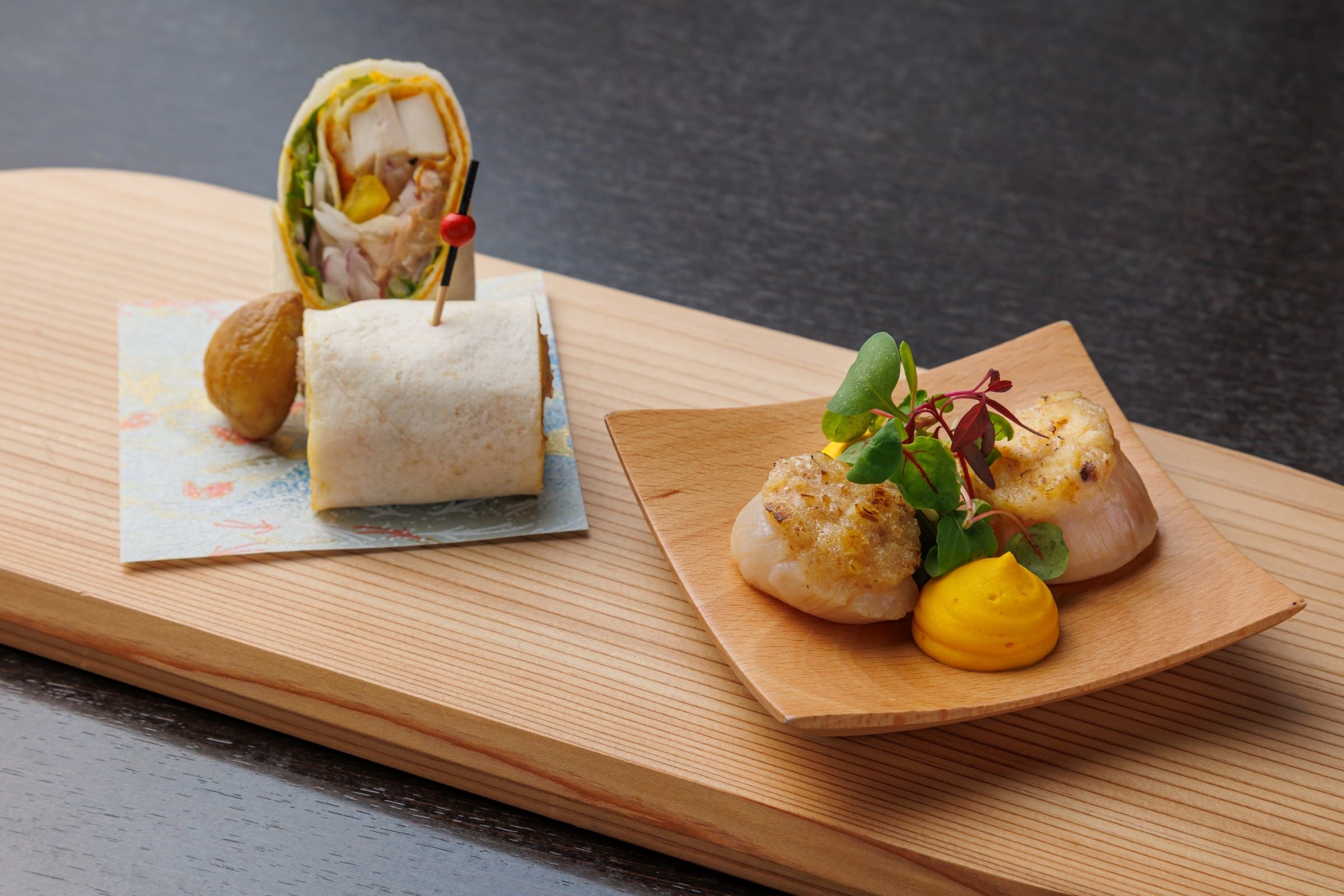 ・帆立貝のクルミ風味焼きサラダ仕立て