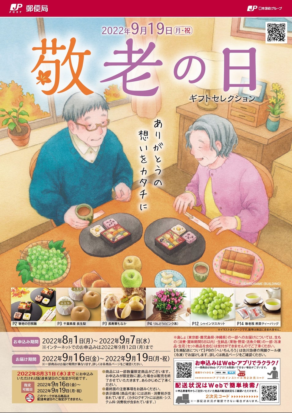 株式会社郵便局物販サービス(東京都江東区、代表取締役社長 荒若 仁)は、「敬老の日」ギフトセレクション カタログを2022年8月1日(月)から販売開始します。