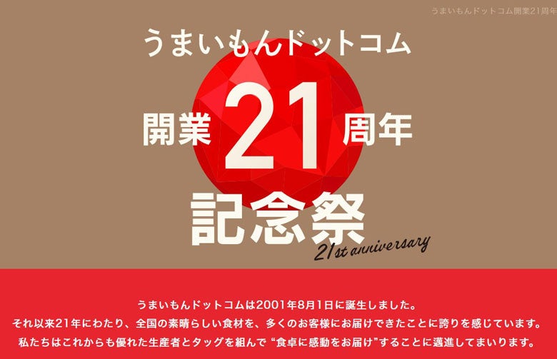 - 「うまいもんドットコム開業21周年 記念祭」について、詳しくはwebへ https://www.umai-mon.com/user/collection/1036