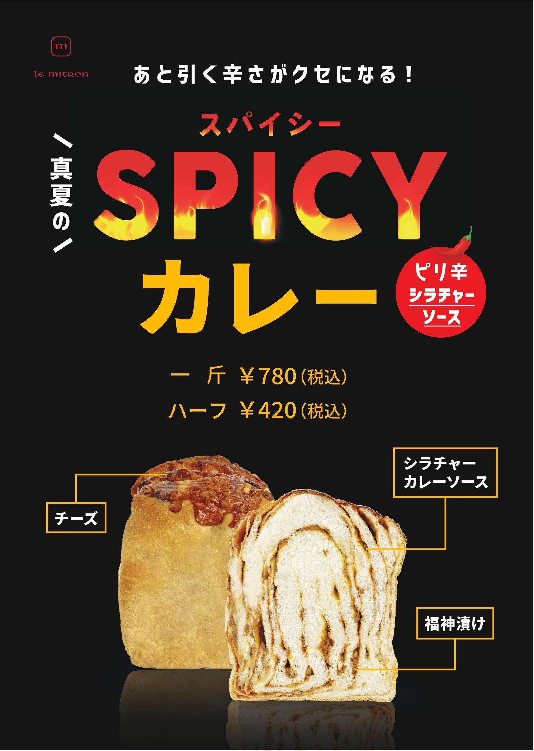 横浜生まれのバリエーション食パン店「ル・ミトロン 食パン」(株式会社ベーカリーイノベーション / 本社:神奈川県横浜市、代表取締役:山田政弘)は8月の限定メニュー『真夏のスパイシーカレー食パン』を販売致します。