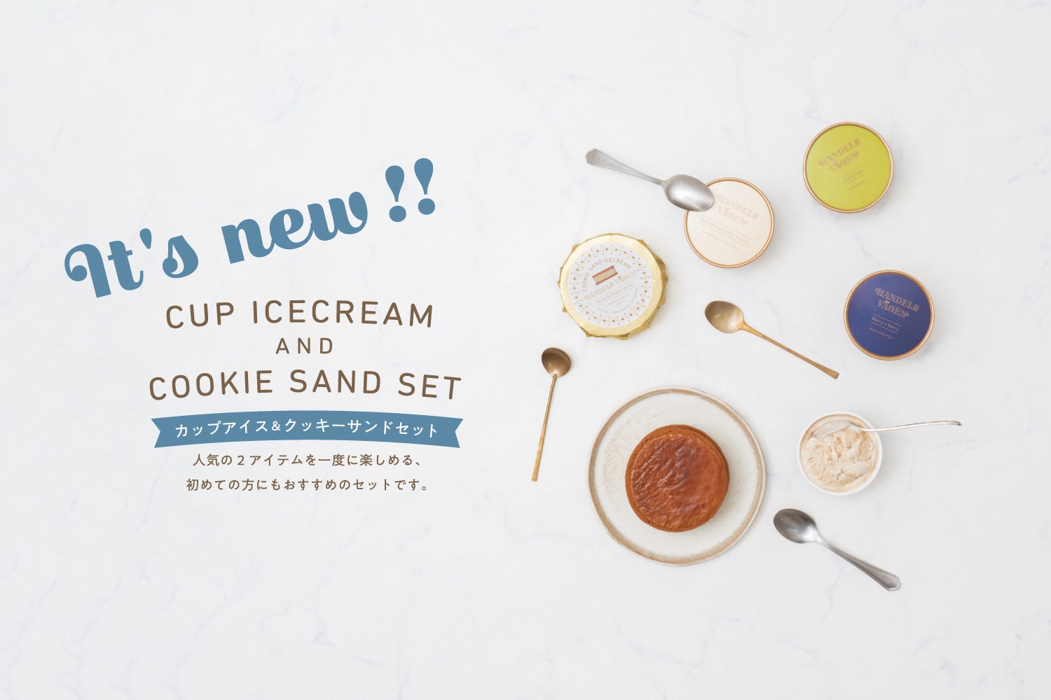ハンデルスベーゲン自体が初めてという方にも、カップアイスとクッキーサンドどちらも一度に味わいたい!という方にもおすすめなセット内容になっております。