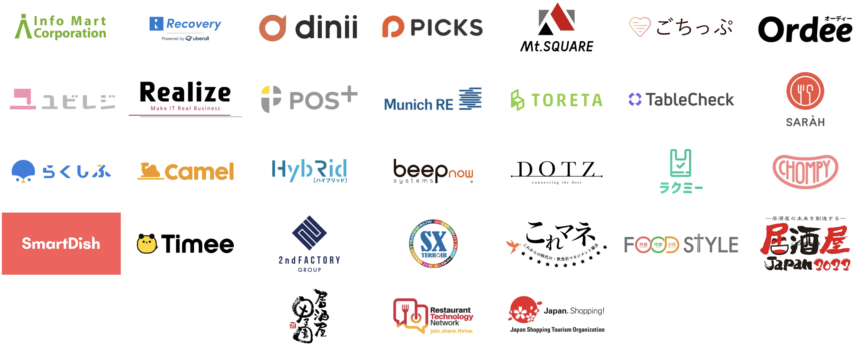 2022年7月時点で、賛助会員含む協力団体29社のご協力のもと、日本最大のレストランテックコミュニティを形成しています。